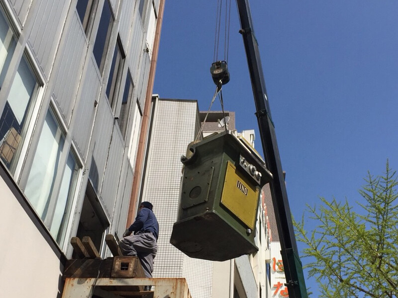 何トンもある重機は2Fの窓から・・・。