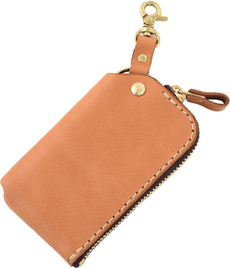 内縫いと革のワッシャーでマチ幅を持たせたスマートキーケース。
