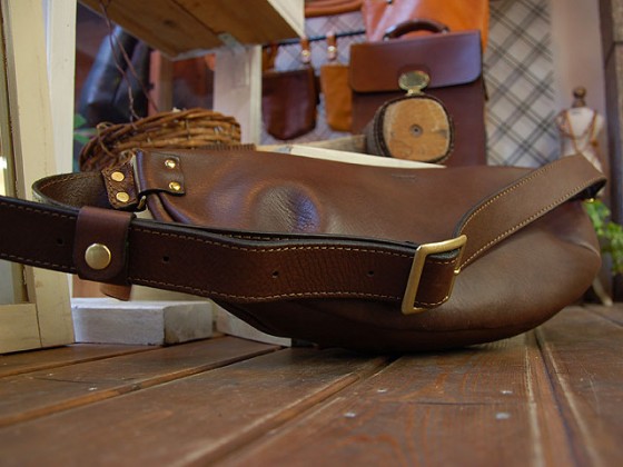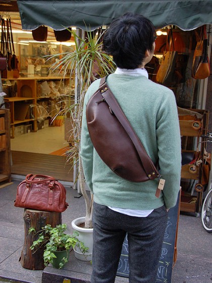 作り手:西川作のサンプルのタンドーボディバッグ。