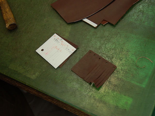 カシメの長さが足りなかったりと、ゲージ作りから革の漉き加減を決めるのにも