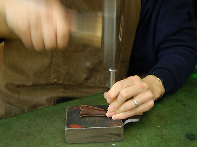 タッセル部分は革の漉き具合でカシメの穴が合わなくなってしまったり、