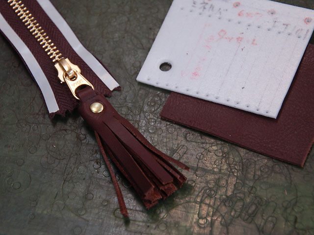 形はシンプルですが、タッセルやファスナーの尻尾の部分など、
