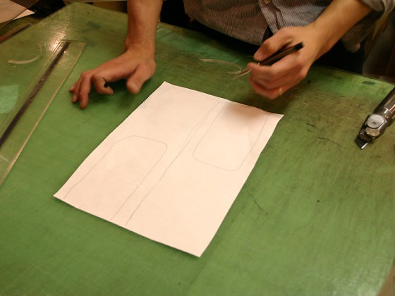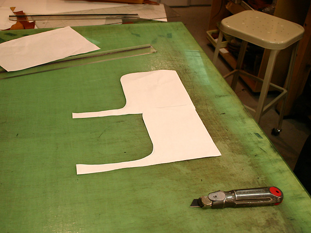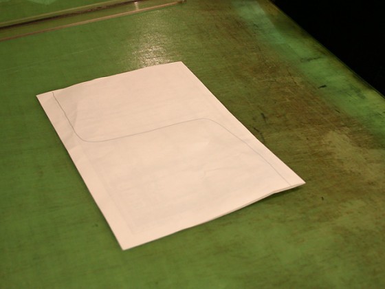 大きな四角形をゆるやかなカーブで2分割しているので、型紙は