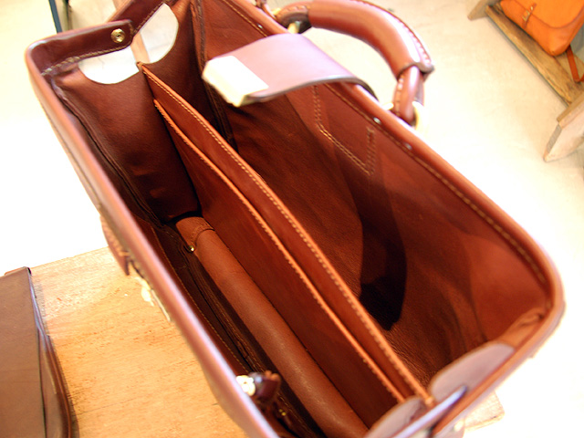 口枠が大きく開くので中が見やすく、真ん中の仕切りで書類や荷物を分けて収納することができます。