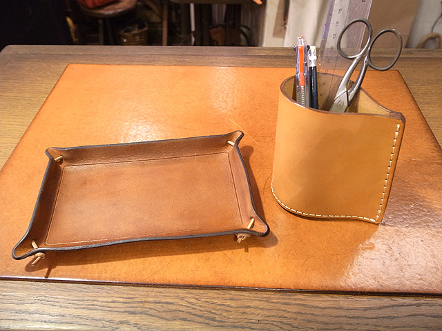 合わせて革のトレイも作りました。