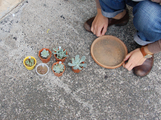 ちゃんと見合った植木鉢が揃ってから、お店にデビューさせるそうです。