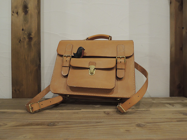 素材は定番のキャメルより少~し白っぽい色の革を使っています。