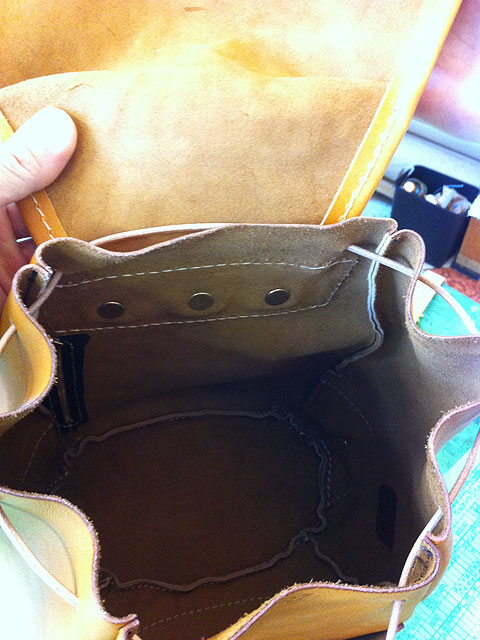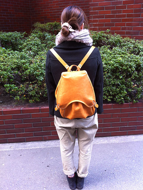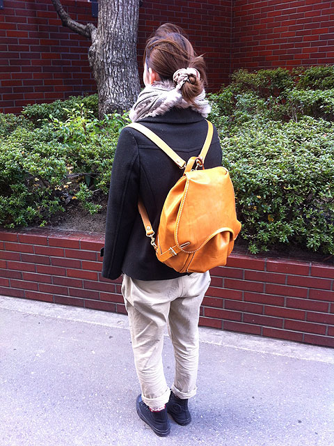 モノがこぼれ落ちないように、前ポケットの真ん中につまみを入れてます。