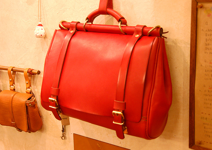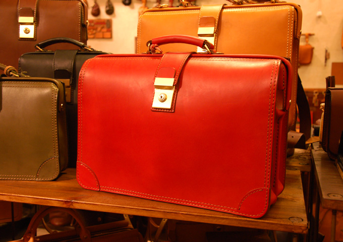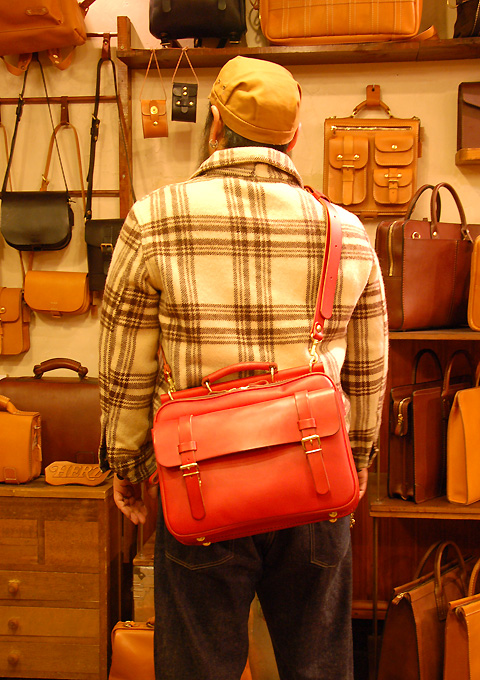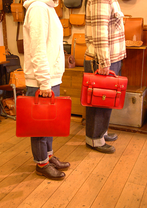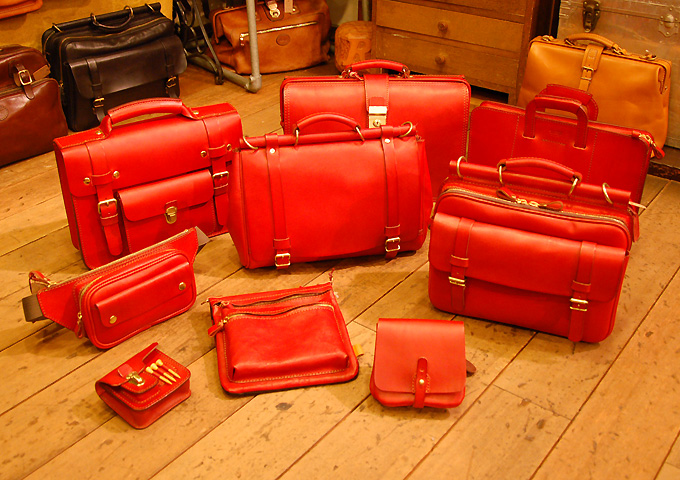 それと、前のブログに便乗して、本店に続々と入荷している赤い鞄をご紹介します。