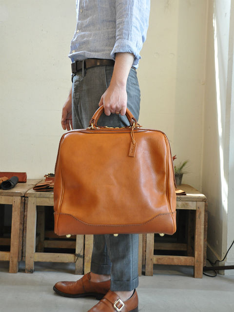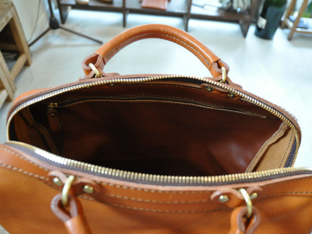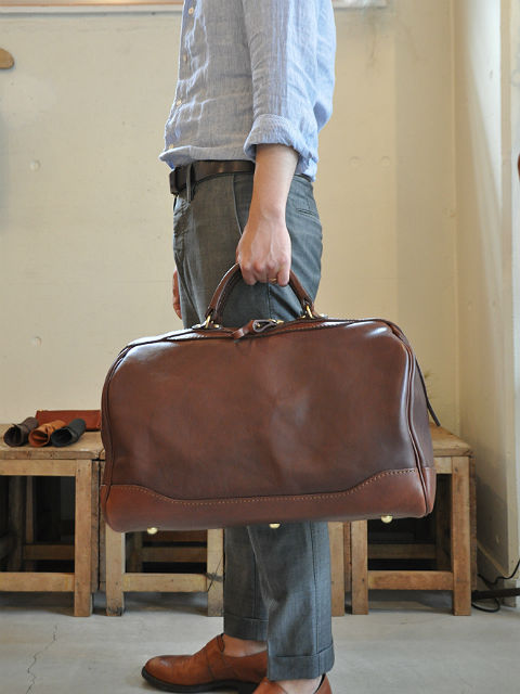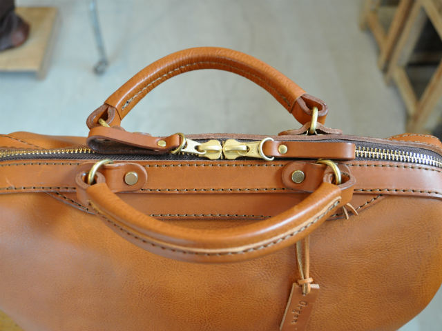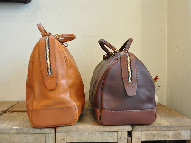 横長のボストンは以前ユーフラテ革で作っていた物を少し仕様を変更したそう。