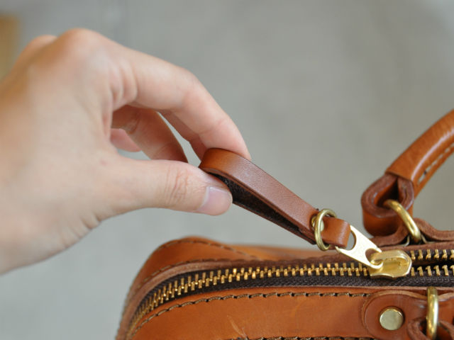 ファスナーは共に両開きになっており、取っ手は沢山物を入れても大丈夫な様にしっかりした作りに。
