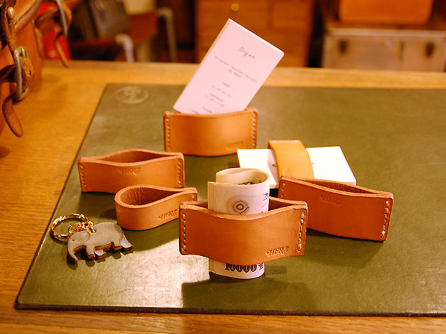 わたくし、チョコ革に黄色の糸という組み合わせが好きでして、今回何点か作ってもらいました。