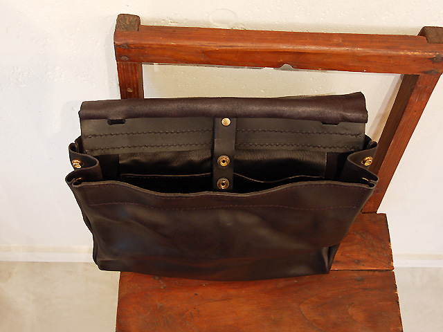 ちなみに鞄内側の中央ホックは表にアタリが出ないよう、内側に留めるタイプで、これで本体がずれることもありません。