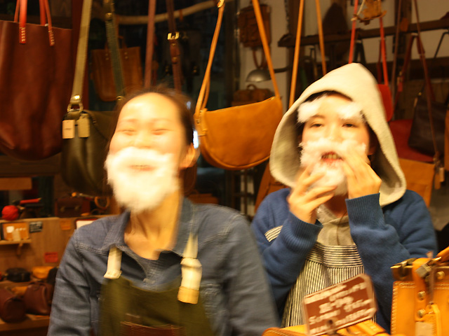 昨晩、悪乗りしたサンタが2人、店内のディスプレイを冬の装いに変えておりました。