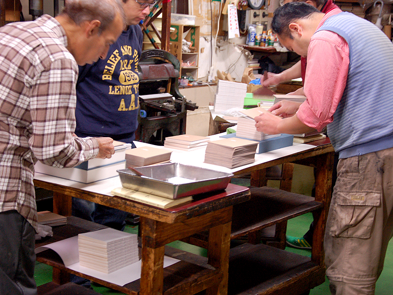 みなさんのご厚意で糸綴じの現場、製本の現場を見学させていただくこともできました。