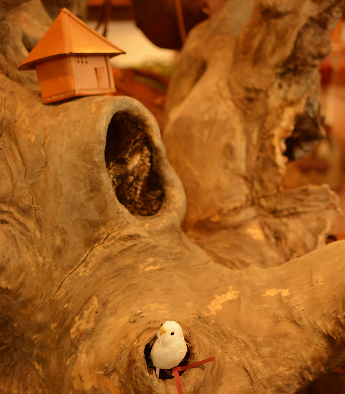 小鳥と革で作った鳥小屋があったりします。