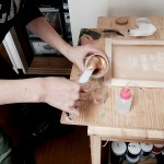 - こけしに見守られながらの作業