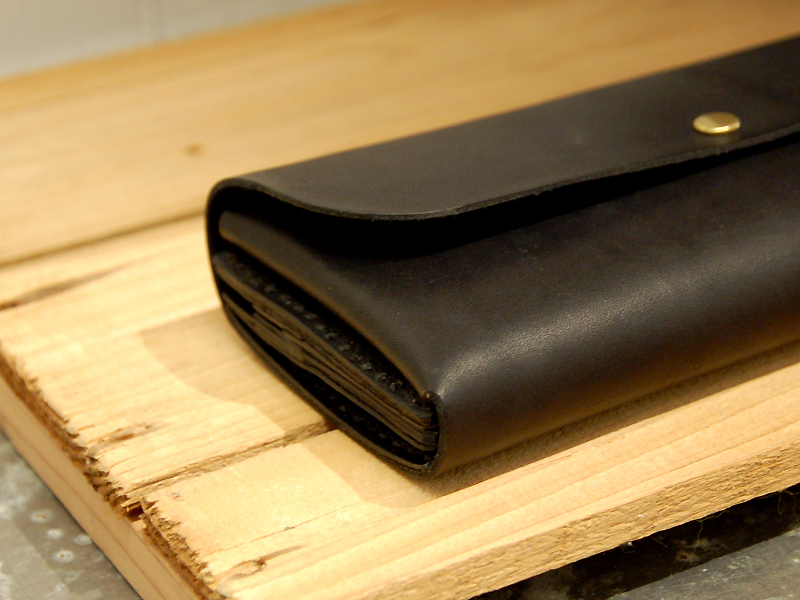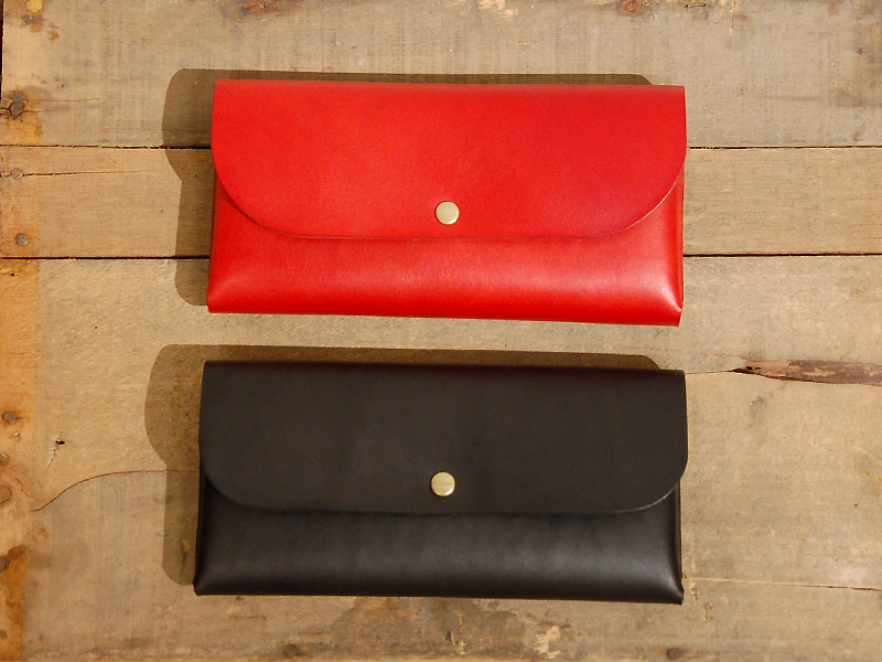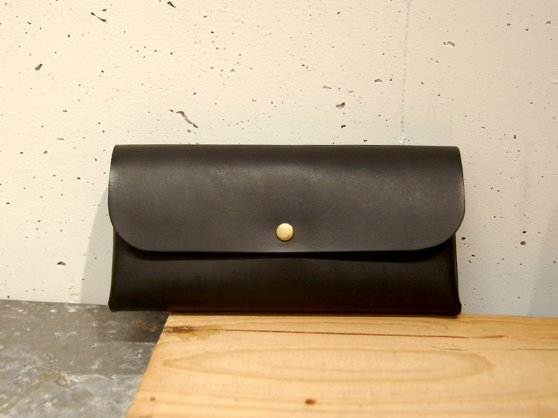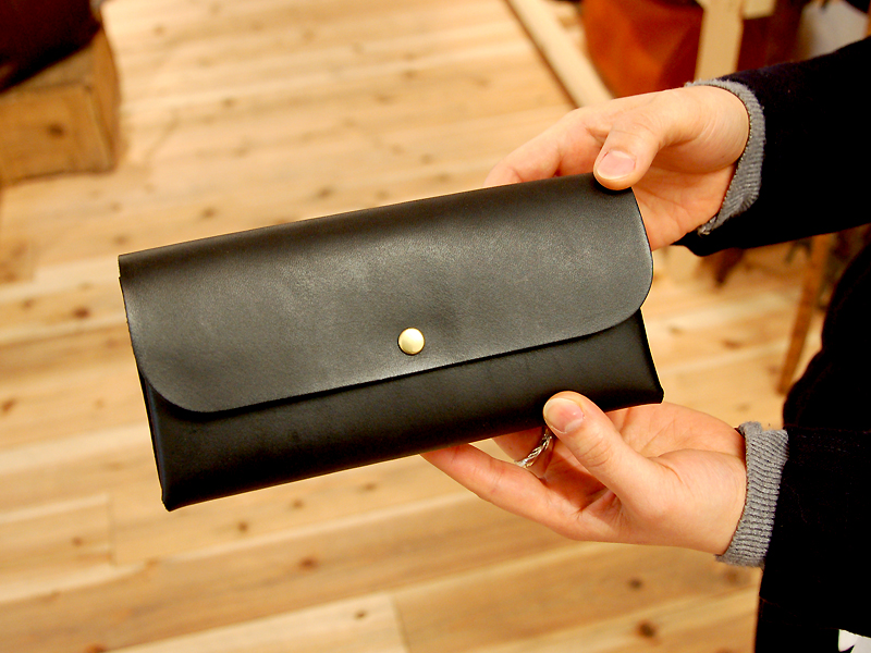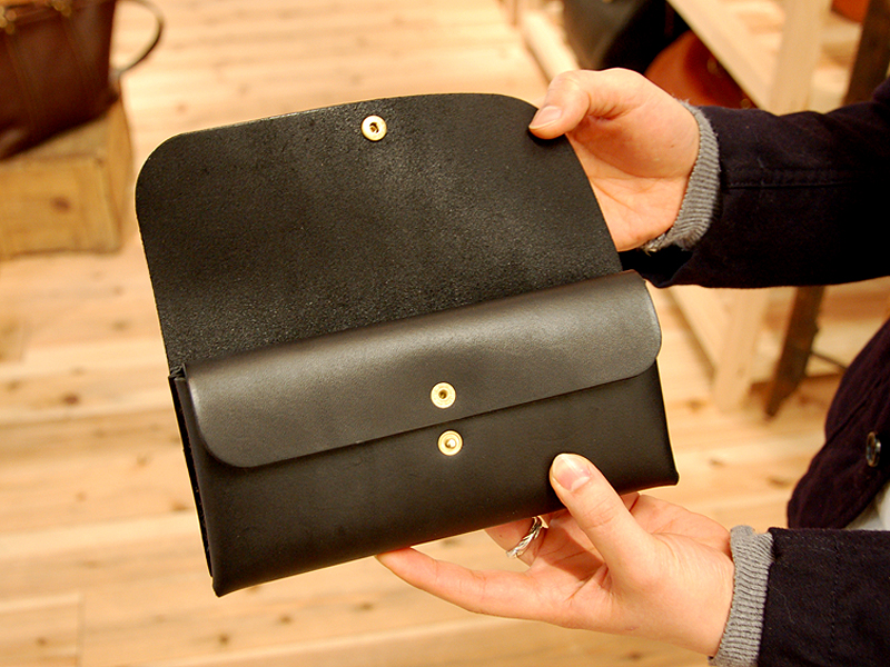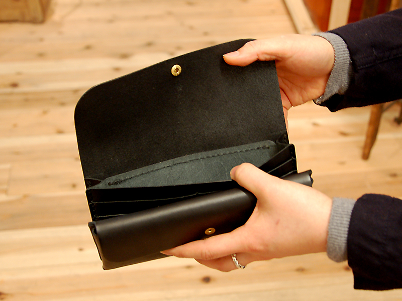 半かぶせ、ホック一つ留めの長財布です。