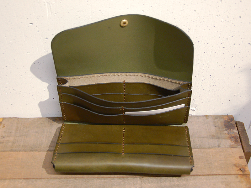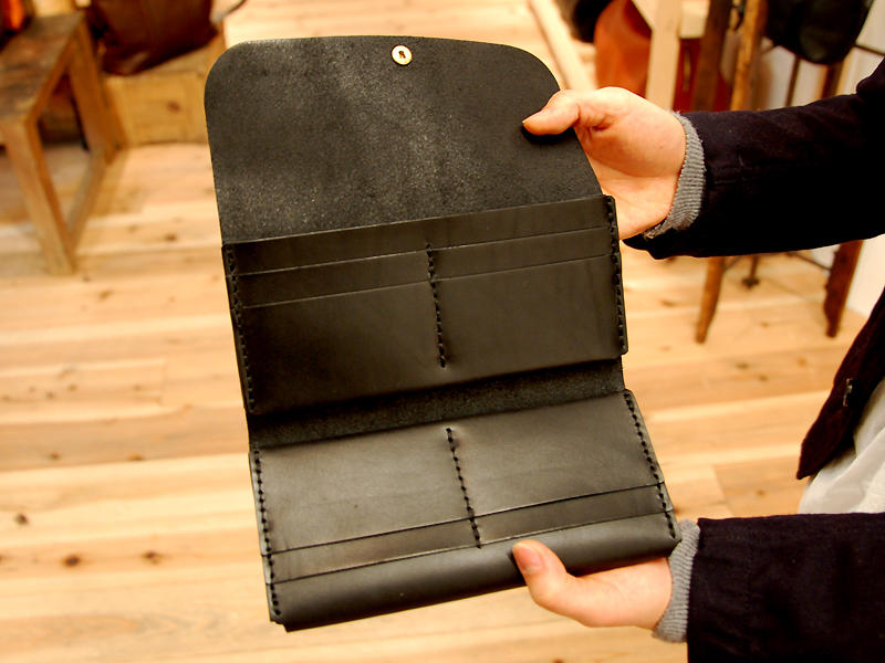 という開けたらギミックが効いている変形長財布。使いこなすのに少々コツが要るのと、