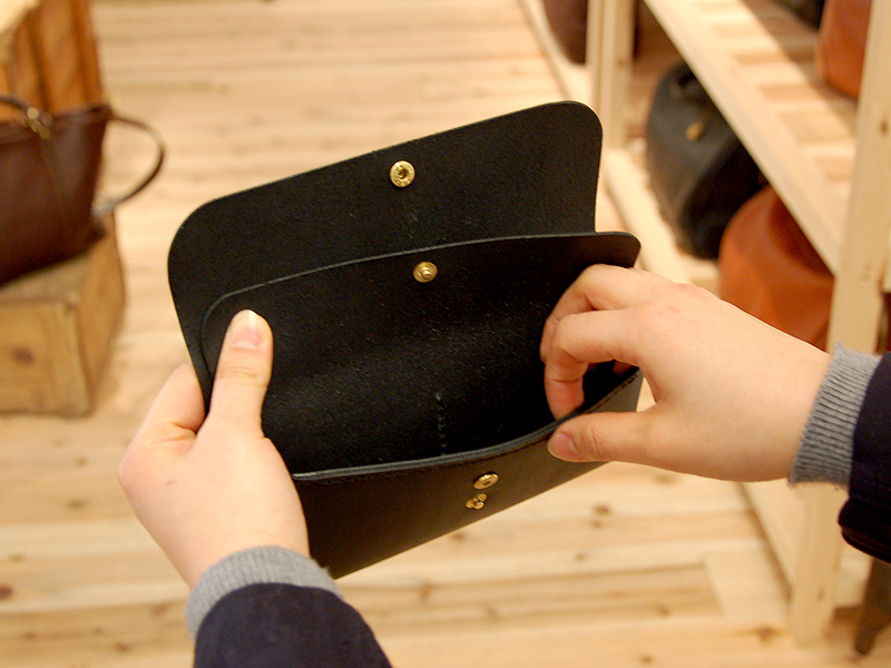 お財布自体の厚みが結構あるので、もしかしたら手が大きい人向きかもしれません(女性スタッフ談)。