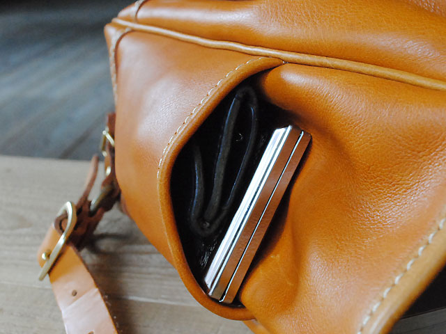 メイン収納口にはベルトが付いており、口部分の広さを調整出来るようにしております。