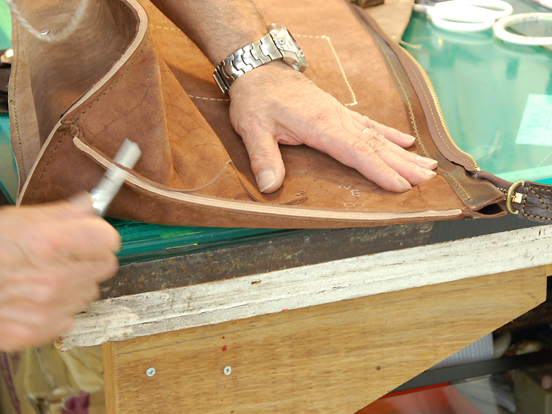どうぞ、という前に、もうそのときには勝手気ままにカットされた革が積んであったのでした。