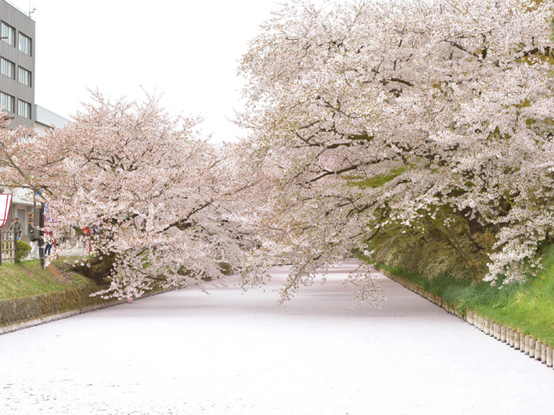 このお堀に浮かぶ桜の花びらを『花いかだ』と呼ぶそうです。