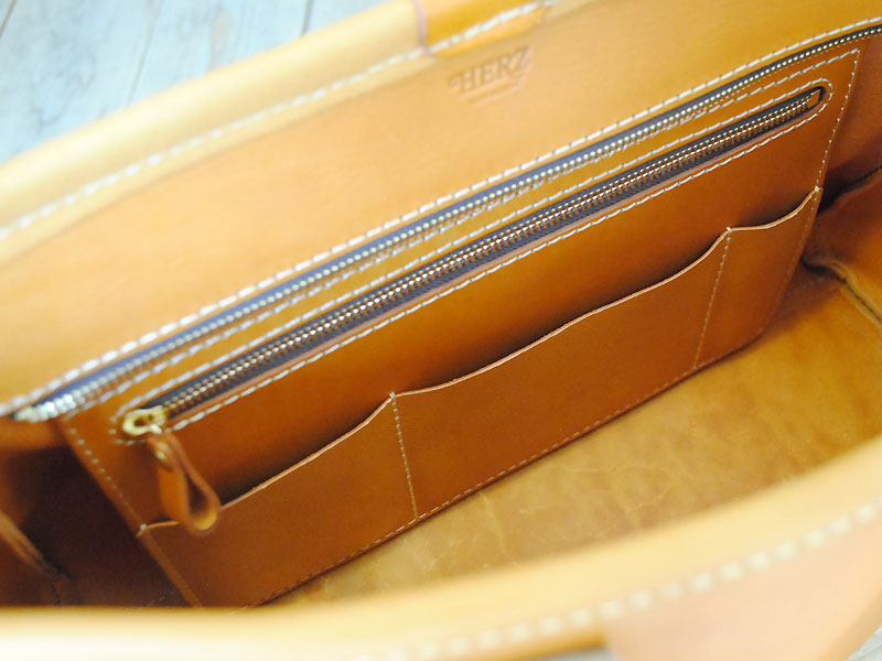 内側にはファスナーポケットと用途によって分けて入れるポケットがあります。