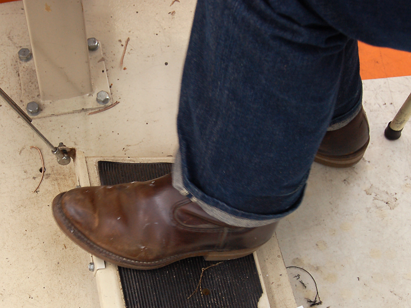 職業柄だけど、つま先、ミシン踏んで傷ついたところは白くなってて。