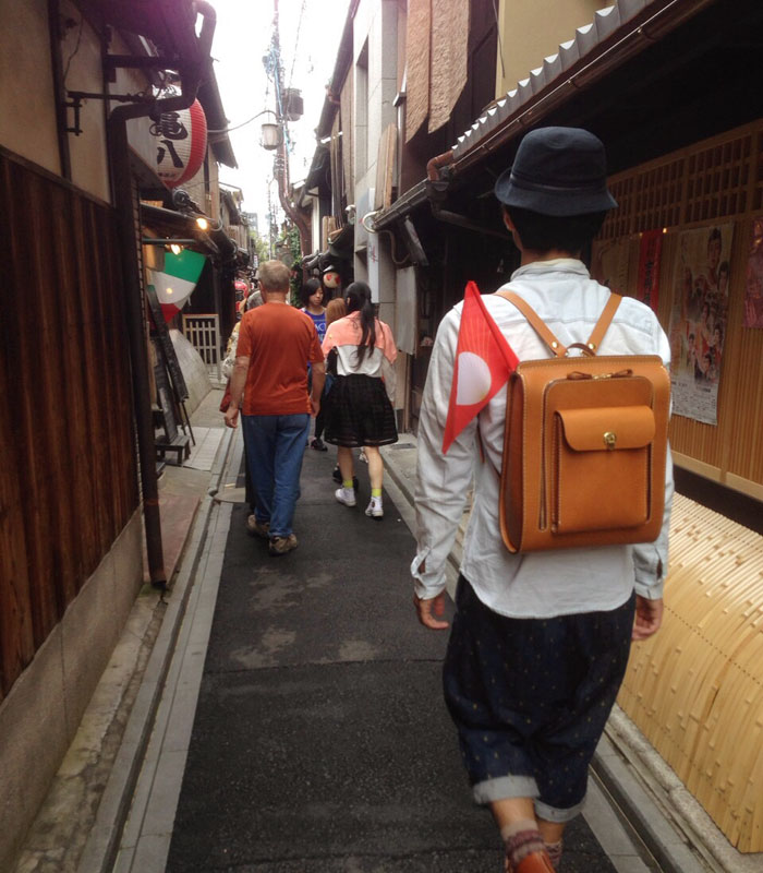 京都細路地とリュック後姿