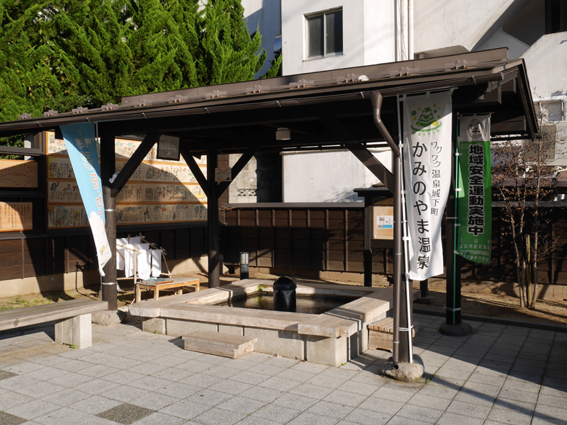 かみのやま温泉街にあるお蕎麦屋さんで、通りをはさんで向かいに無料の足湯があります。