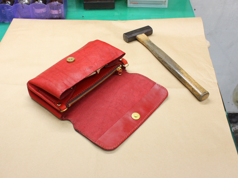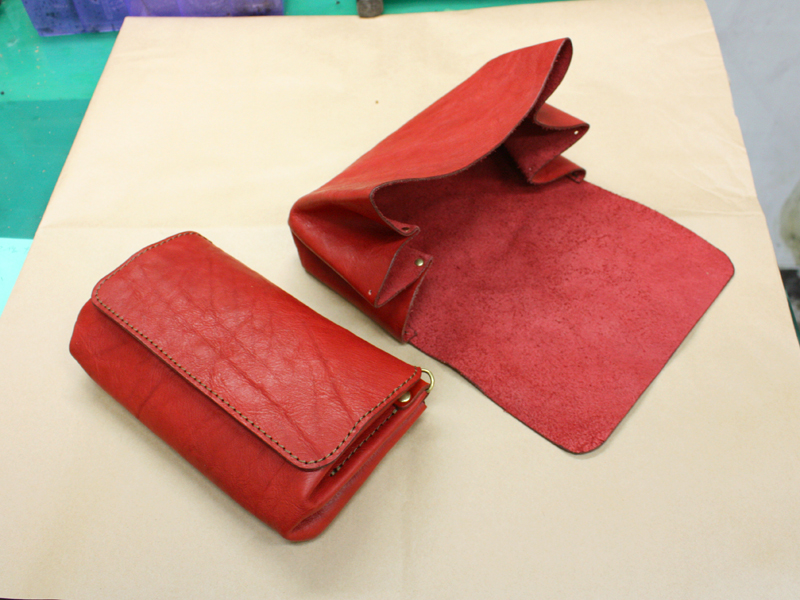 小ぶりなこのポーチは奥さんへの贈り物だそうですが、出来上がったサンプルを手にボソッと一言