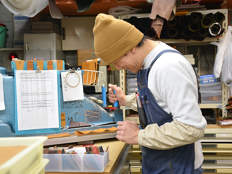 笑ってごまかしつつクリッカーで革を抜いていました。