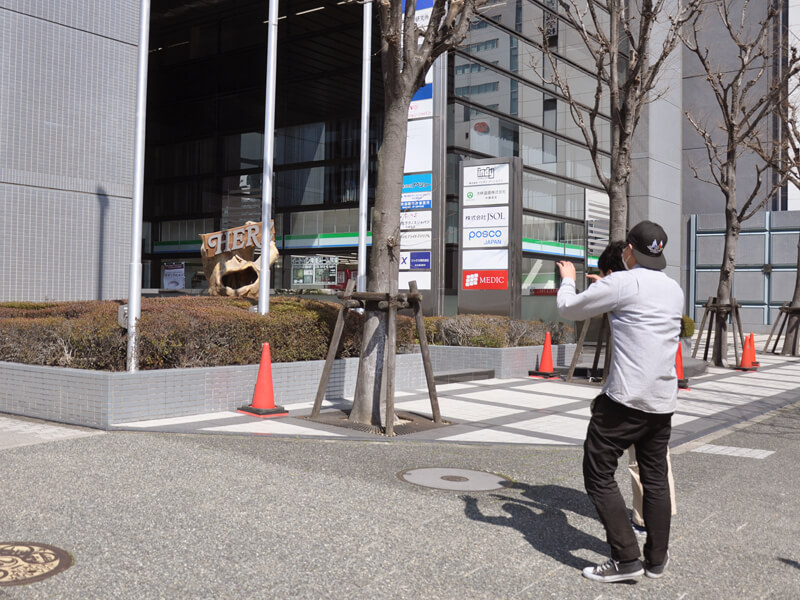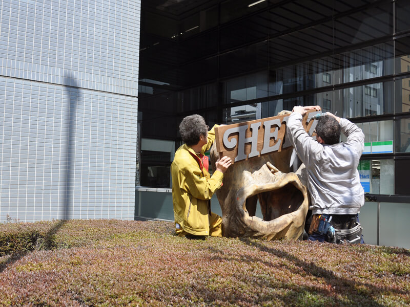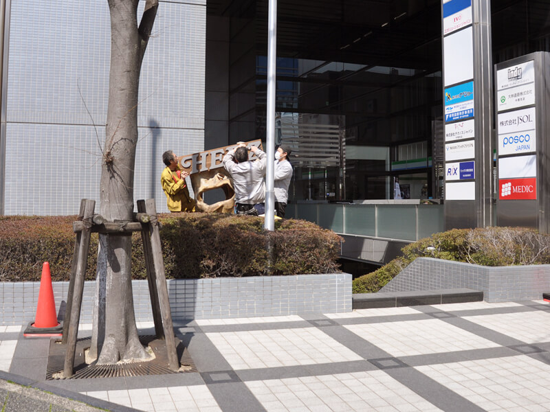 創業者の近藤が出張して、店先に革看板を設置していましたが、
