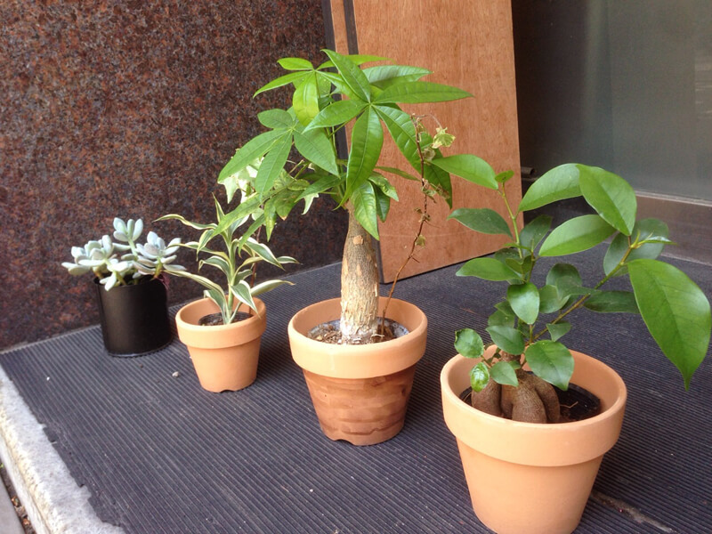 特にパキラ(右から二番目)の成長には目を見張るものがあります。