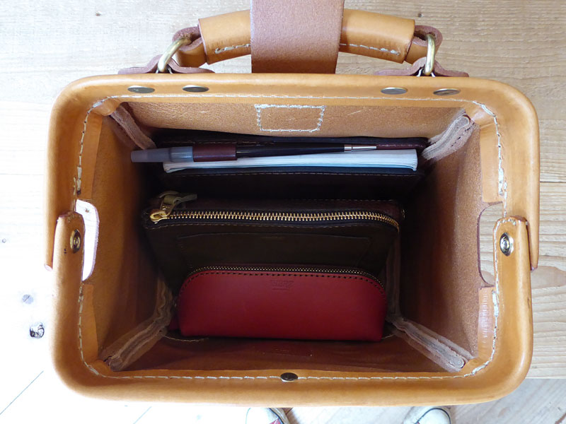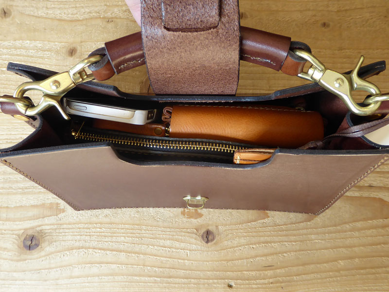 - 中には長財布、手帳、ポーチ、携帯を入れています。