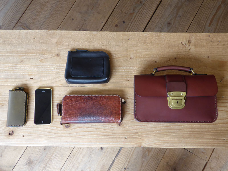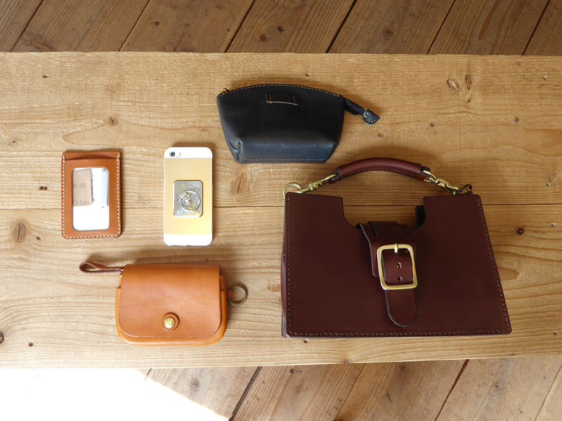- 中には、2つ折り財布(WS-104)、ポーチ(IL-105-S)、携帯、パスケースが入っています。