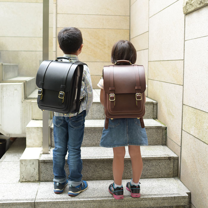 縦型ランドセルを背負う男の子と女の子