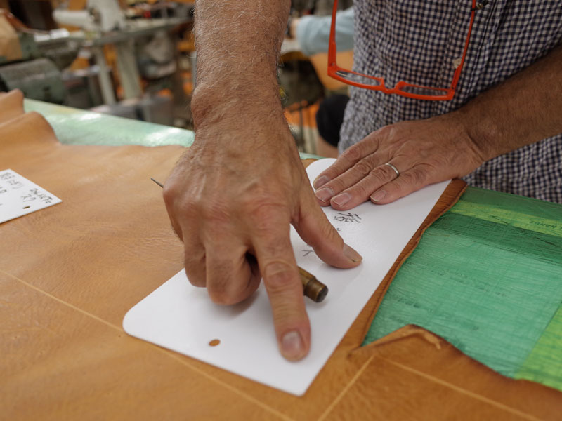 近藤も気に入った革に触れると、自然と笑みが。。。
