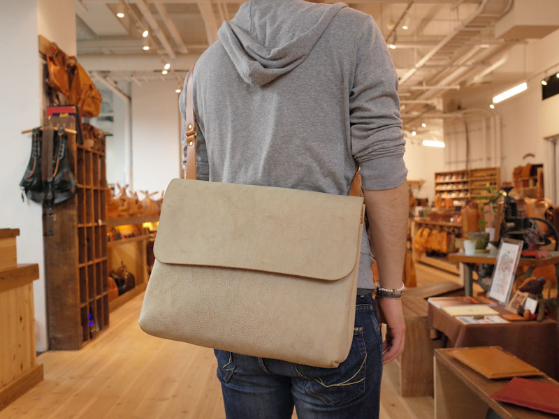 そしてこちらも革の質感を感じられるシンプルな「半かぶせショルダーバッグ(CK-4)」をアラスカ革で。