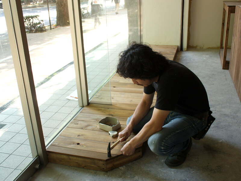 ウィンドウのスノコ。最後の釘1発!!
