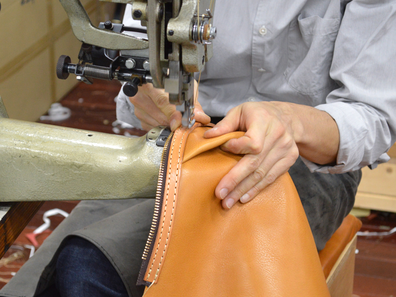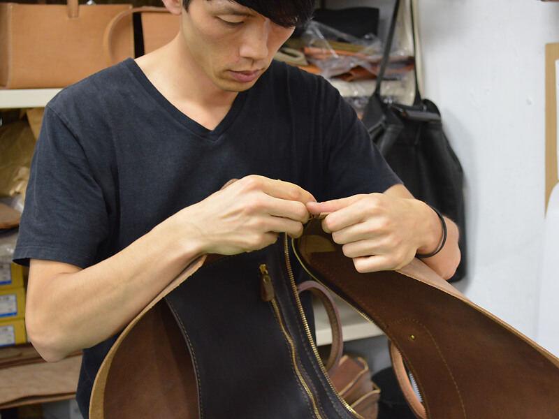 この、折り込んだ革の部分が自然な曲線になるよう、とても意識が集中しているようでした。