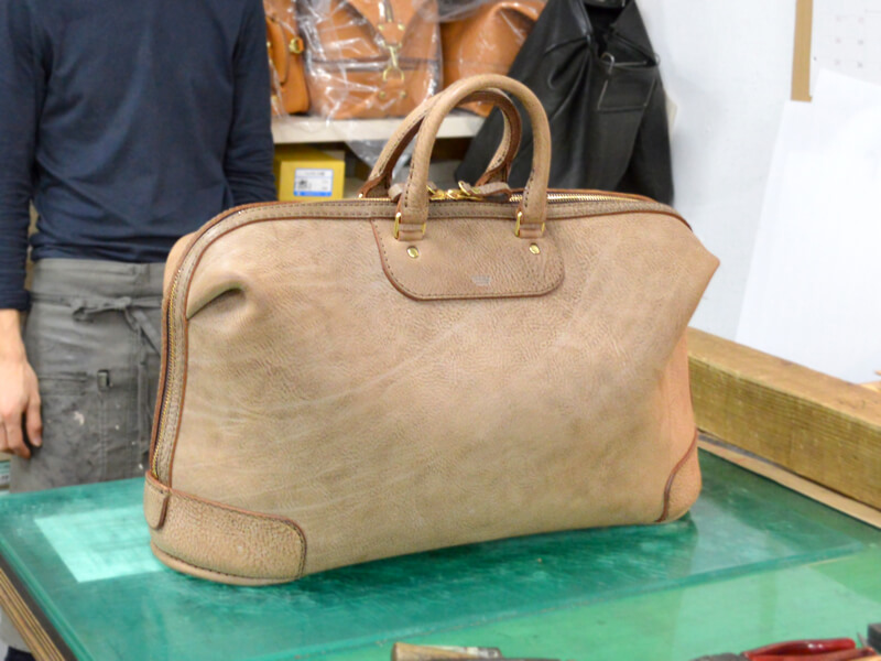ひとクセもふたクセもあるこの素材と、十二分に格闘して仕上がった鞄です。