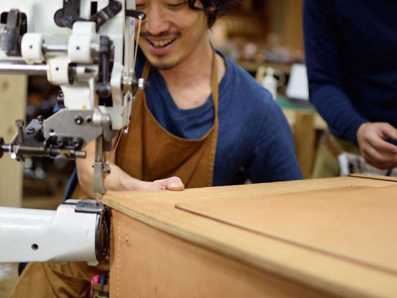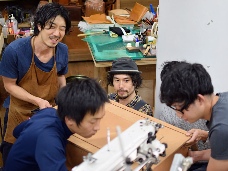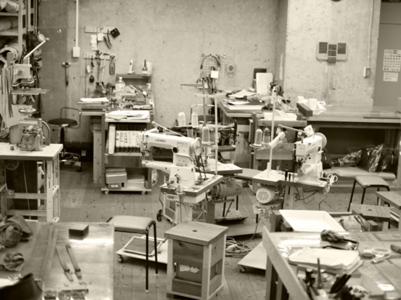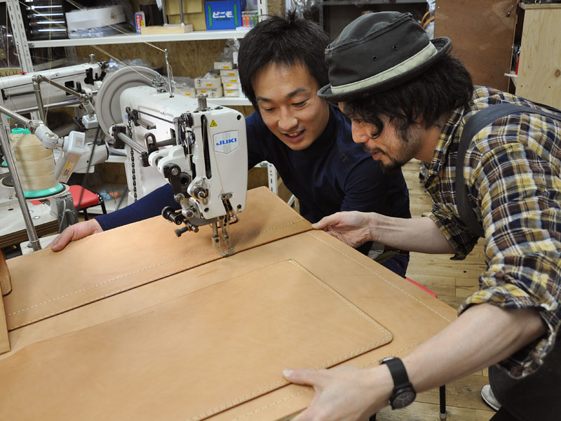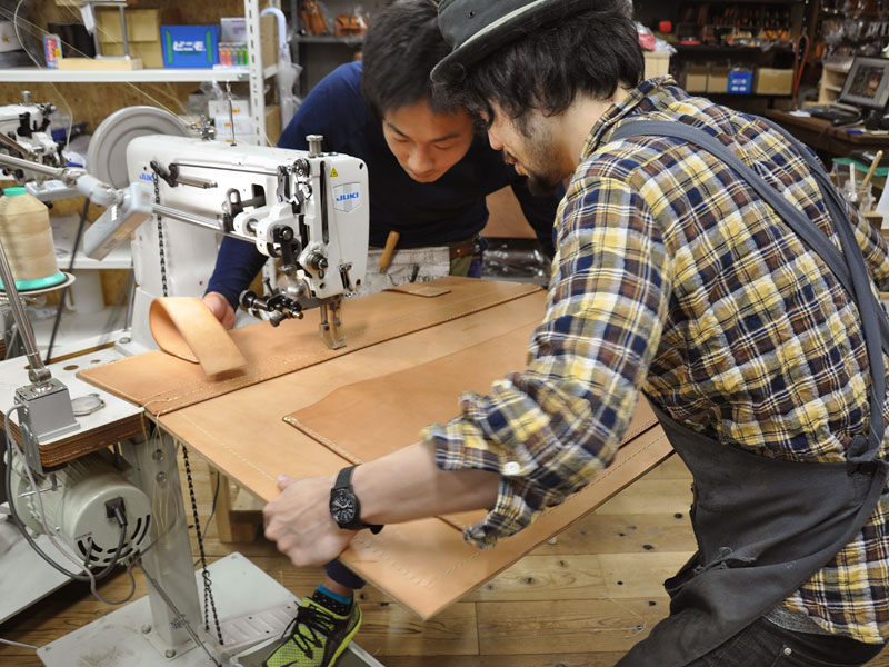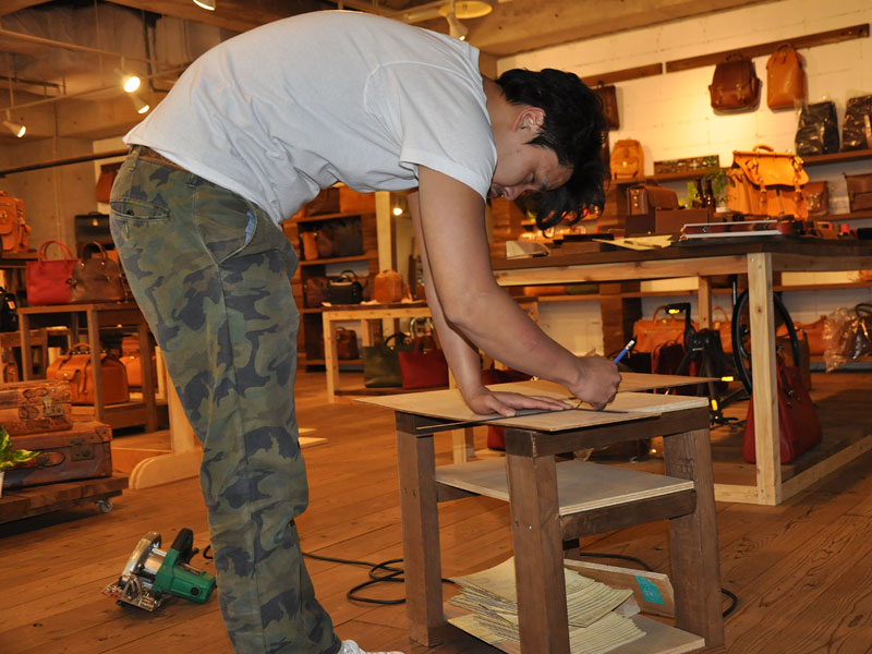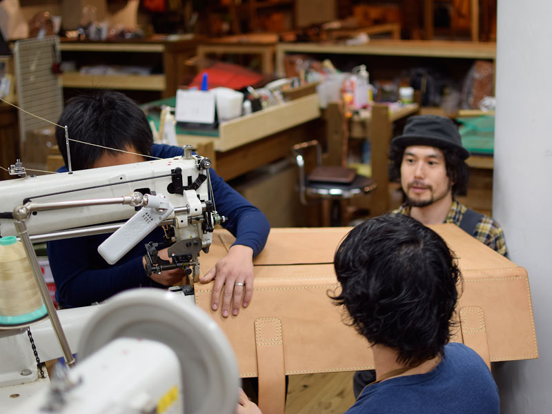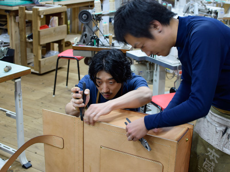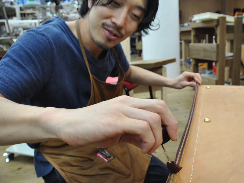 工房では、オープンに向け、店頭に置くための鞄と小物達を鋭意製作中です。