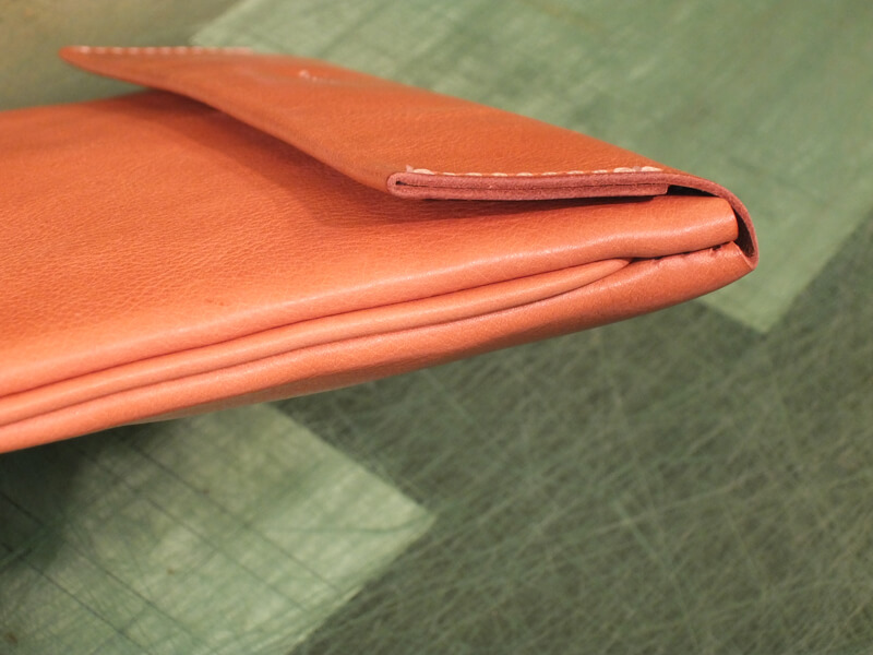 革は2㎜の厚スターレ。本体はつなぎ無しの1枚革で作りました。