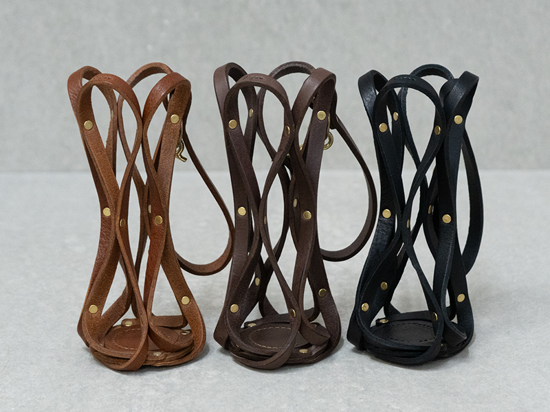革の帯を組み合わせたシンプルな構造ですが、軽く、丈夫でしっかりとボトルを包み込むのため、日常使いからアウトドアシーンにもおすすめです。