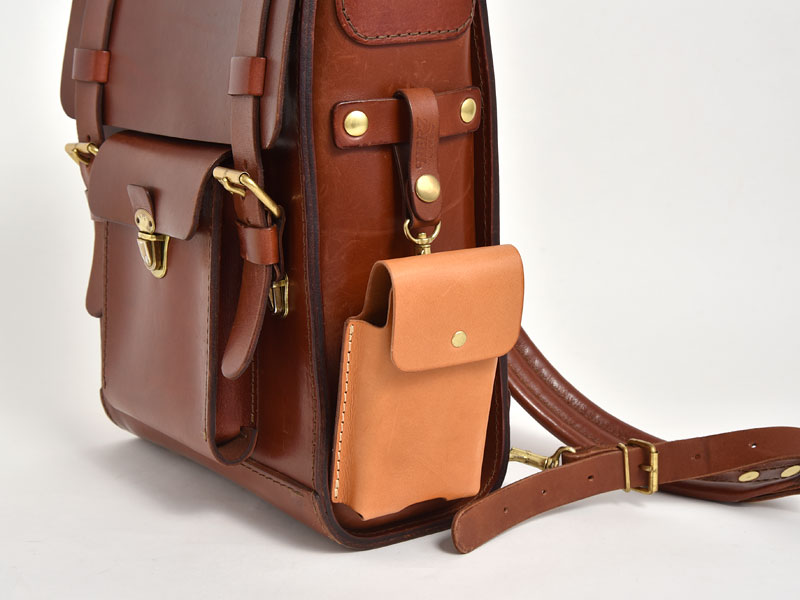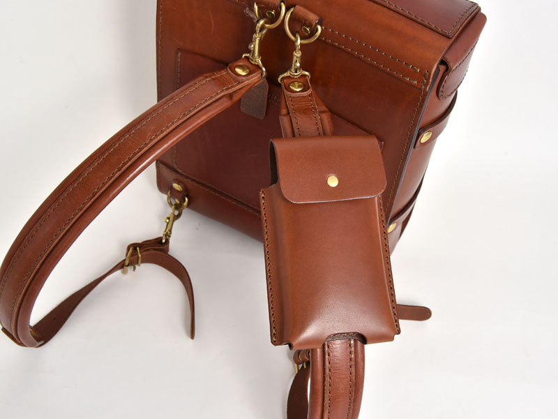 「野口さんとは別の作り手から、大きなアドバイスをもらった事がありました。後面の仕様について悩んでいて、ベルトループを取り付けたい、さらにDカンも付けたい、けどどうにも収まりが悪い、とあれこれ悩んでいた所『2way縦横ベルトポーチ(E-118)後面のベルトループを使ったら解決するんじゃない?』と言われて、一気に道が開けました。」