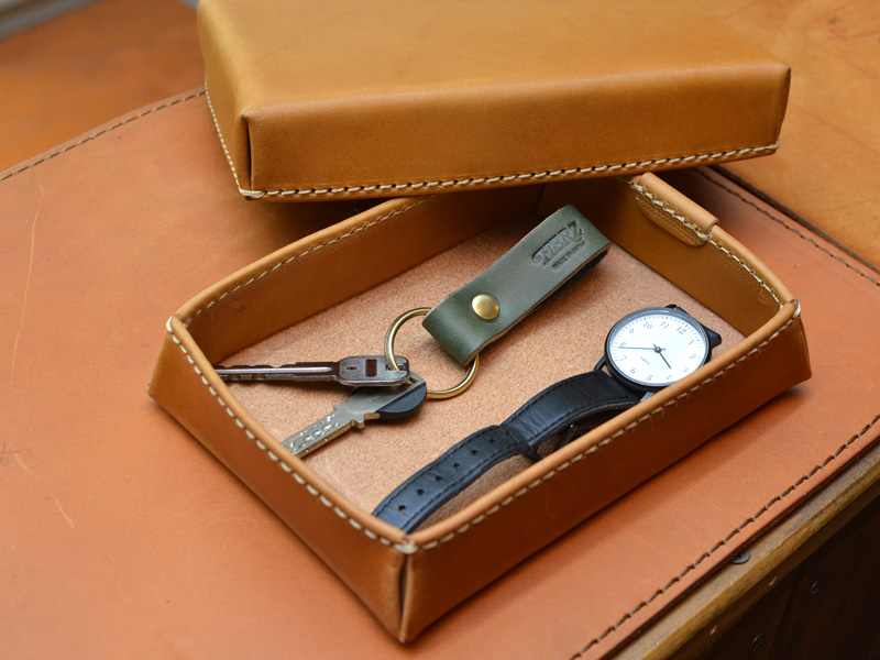 玄関先やベッドサイド、机の引き出しの中などで使える革の箱です。