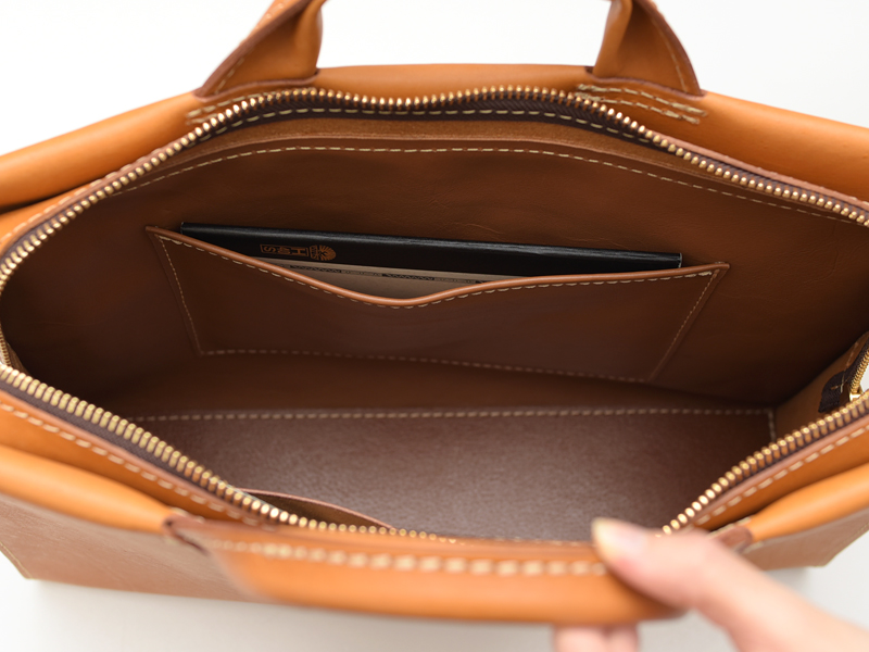 内側にポケットがあるので、底で小物がごちゃごちゃする心配もなし。
