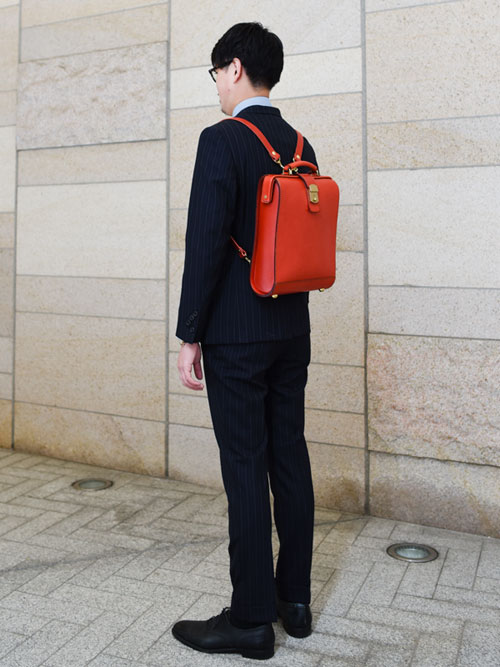 「背負いたい!」「縦型が好き!」という下川の希望を叶えたモデルがこちら。人気の口枠シリーズをリュックタイプに落とし込んだことに加え、女性でも使いやすい丸みのあるデザインですね。